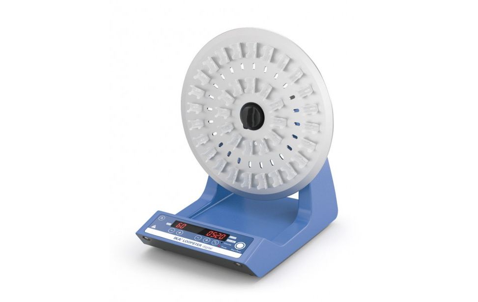 Digital rotator for smooth but effective mixing with adjustable speed. Ideal for biological samples, particularly blood samples. Suitable for separating and mixing processes of powdered and liquid samples in Eppendorf tubes and Greiner tubes up to 50 ml. The easy removable attachments allow simple and quick cleaning of the unit of spilled samples.
